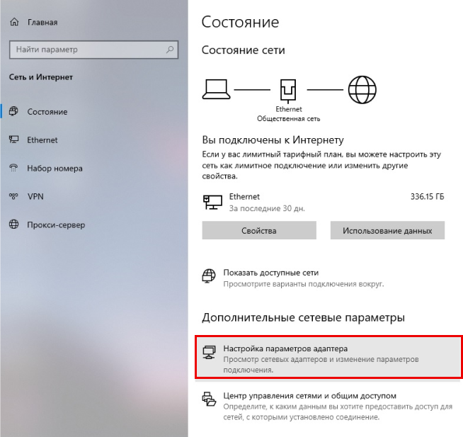 Если адрес найти не получается, то можно воспользоваться просмотром состояния настроек на подключенном устройстве, для этого заходим в Меню Пуск -> Настройки -> Сеть и Интернет -> Настройка параметров адаптера. Открываем меню беспроводного подключения и выбираем “Состояние”. В открывшемся окне нажимаем кнопку “Сведения”. В следующем окне нас интересует строчка которая называется Шлюз по умолчанию, цифры указанные в поле “Значение” соответствуют адресу нашего роутера.